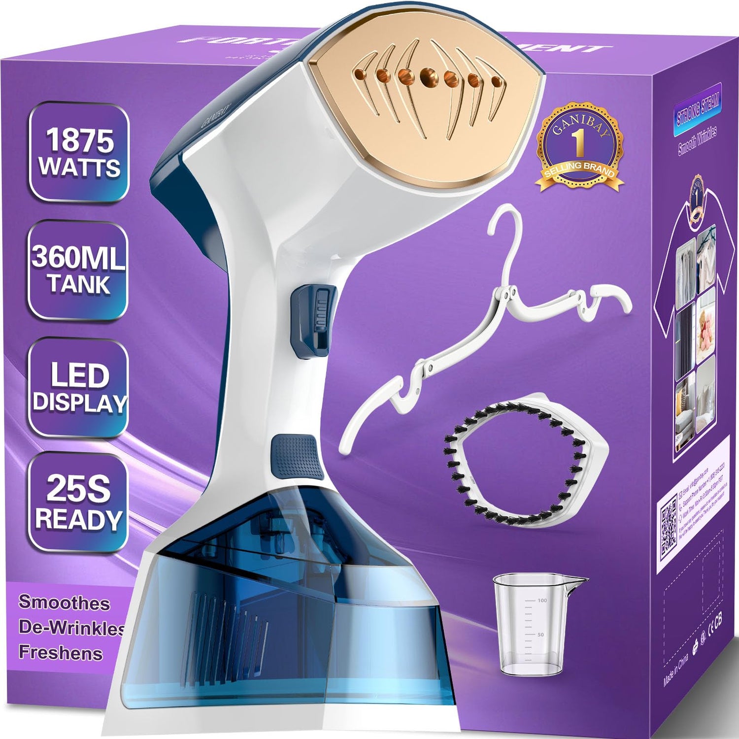 1875W Steamer for Clothes with 360ML Tank, Fast Heat-Up and Auto-Off, LCD Steamer Iron 2 in 1 Fabric Wrinkle Removes with Hanger and Brush, Handheld Clothes Steamer and Portable Garment Steamer